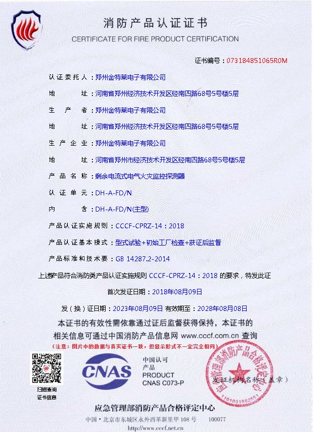 鄭州金特萊電子有限公司成立于2006年,是集研發、生產、銷售、服務為一體的綜合性高新科技企業。公司致力于DH-A系列電氣火災監控系統,智慧用電,智慧消防,智慧斷路器消防設備電源監控系統,防火門監控系統,控制與保護開關,智慧消防云平臺,微機保護裝置,多功能電力儀表,電氣火災報警系統,剩余電流式電氣火災監控探測器,電氣火災監控設備,漏電火災探測器,故障電弧探測器等產品的廠家。